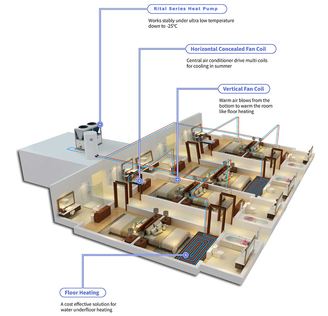 Applied to some large-scale public places in cold climate areas for heating and cooling